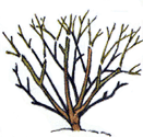 During the first two seasons, allow the plant's basic framework to develop, pruning out only the small spindly shoots. Thereafter, for a smaller shrub with larger, better quality flowers, prune by one-half; for a larger shrub with more flowers, prune back by one-third.