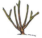 | 3. Shape the plant by removing some canes. You are safe in cutting back to 5-10 strong canes. |
